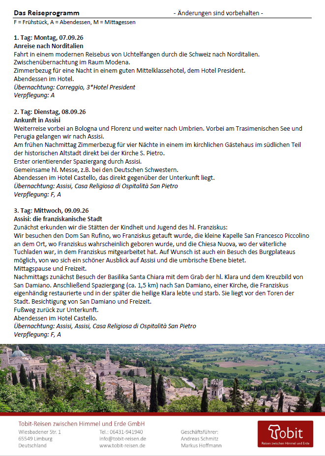 Assisi – Pilgerreise im September 2026