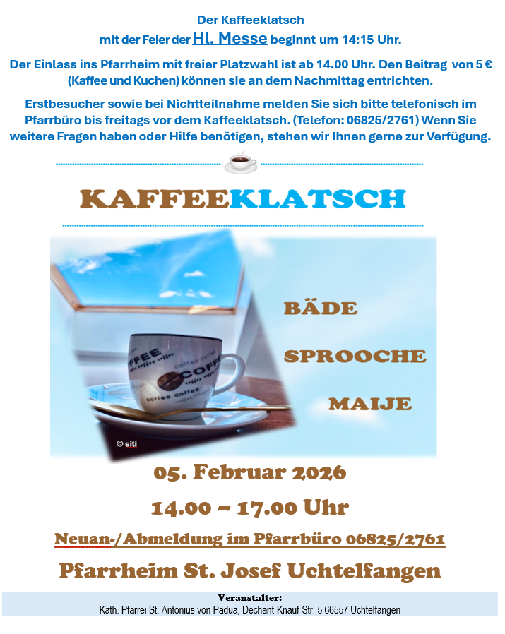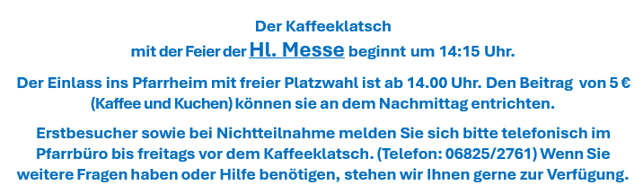 Kaffeeklatsch mit Feier der Hl. Messe